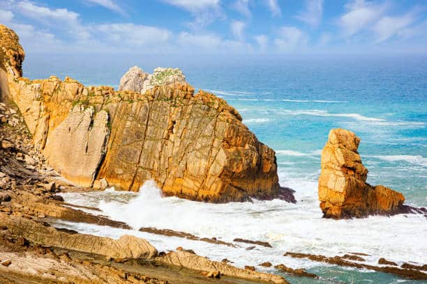Playa salvaje de arena fina y dorada con un paisaje espectacular. Sus rocas tienen unos 100 millones de años de cuando la península . ibérica giro en rotación con respecto
